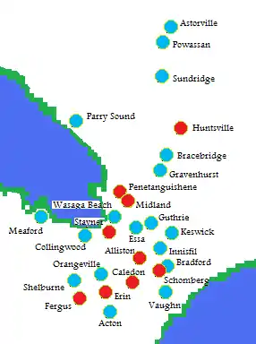 In, May 2010, The OHA confirmed the welcoming of The Caledon Golden Hawks have entered the GMOHL. In March 2012, the GMOHL allowed the Huntsville Otters to join the league after recently retracting from the Ontario Junior Hockey League.[1] With the announcement on April 16, 2015 the league accepted the Collingwood Admirals as the eleventh franchise to the Georgian Bay Mid-Ontario Hockey League.[2] The awarding of the Collingwood franchise was challenged by the Stayner Siskins on the basis that the area did not have enough hockey players to support another franchise. Their appeal was upheld and the expansion Admirals will not participate. The Fergus Devil's announced that they are taking a leave of absence for the 2015-16 season.
