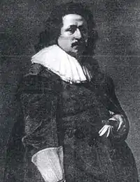Gerard Douffet (6 August 1594 – 1660/1661), also known as Doufeet or Duffeit, was a Walloon painter. He was born at Liège in 1594, and studied for some time at Antwerp, Belgium in the school of Rubens, and afterwards in Italy. He composed and designed with good taste, and his historical pictures are much esteemed. 'Pope Nicholas V. at the Tomb of St. Francis of Assisi' (painted in 1627), 'St. Helena and the true Cross' (painted for the Abbaye Saint-Laurent de Liège), and two male portraits (one dated 1624), are in the Munich Gallery. He died at Liège, Belgium in 1660.