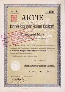 The Gernrode-Harzgerode Railway Company (German: Gernrode-Harzgeroder Eisenbahn-Gesellschaft) or GHE was a private railway company in Germany that operated the Selke Valley Railway (the line from Gernrode via Hasselfelde and Alexisbad to Harzgerode and the line from Stiege to Eisfelder Talmühle). It had a junction with the network of the Nordhausen-Wernigerode Railway Company (NWE) at Eisfelder Talmühle station.