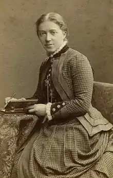 In the autumn of 1873 she moved to Neufchatel, Switzerland. In 1876 she married a Swiss painter, and lived for a while with him in his parents' house.[5] Her husband was Edouard Guillaume of Les Verrières, Neuchatel.[6] Her brother-in-law was James Guillaume, an anarchist closely associated with Mikhail Bakunin.[7][8][lower-alpha 1] The newlyweds moved to Paris, but it turned out that her husband was not willing to commit to marriage and abandon his bachelor habits, and Gertrude was constrained to demand a divorce.[5] In the summer of 1878 she returned home from Paris.[10]