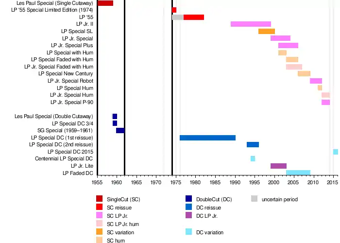 - 1976[5]–1989: Les Paul Special Double Cutaway (1st Reissue)