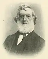 Gideon Welles, the son of Samuel Welles and Ann Hale,[1] was born on July 1, 1802, in Glastonbury, Connecticut.[2] His father was a shipping merchant and fervent Jeffersonian;[3] he was a member of the Convention, which formed the first state Connecticut Constitution in 1818 that abolished the colonial charter and officially severed the pre-American Revolution political ties to England. In contrast to the Fundamental Orders of Connecticut, the successor constitution of 1818 provided for freedom of religion. He was a member of the seventh generation of his family in America. His original immigrant ancestor was Thomas Welles,[4][5] who arrived in 1635 and was the only man in Connecticut's history to hold all four top offices: governor, deputy governor, treasurer, and secretary. He was also the transcriber of the Fundamental Orders. Welles was the second great-grandson of Capt. Samuel Welles and Ruth (Rice) Welles, the daughter of Edmund Rice, a 1638 immigrant to Sudbury and founder of Marlborough, Massachusetts.[6]