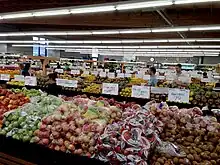 In 1977, Glenn and Diane Yasuda opened a small neighborhood market in a converted building that formerly housed a bowling alley at 2777 Shattuck Avenue.[4][5] By the late 1990s, it had outgrown the building, and in 1999 moved to a renovated Safeway at 2020 Oregon Street.[6] Labor organizers pushed to unionize the store's 250 employees in 2003, but after a series of disputes, the National Labor Relations Board accused the company of "pervasive and serious" labor issues that prevented a fair election.[6][7] The company reached a settlement recognizing the United Food and Commercial Workers as representatives of Berkeley Bowl workers, and paying but not reinstating two employees who claimed that they were unfairly fired.[7] A second location, Berkeley Bowl West, opened in 2009. The union was decertified after an employee vote in 2010.[8]