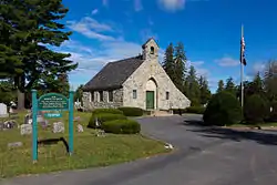 The Memorial Chapel (1946) is a small, front gabled stone building with a slate roof. The cemetery office (1950) is a concrete stucco finished building with a peaked slate roof. The cemetery includes a number of notable burial monuments and mausoleums.[4]