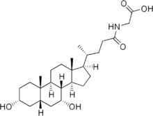 Glycochenodeoxycholic acid is a bile salt formed in the liver from chenodeoxycholic acid and glycine, usually found as the sodium salt.[1][2] It acts as a detergent to solubilize fats for absorption.