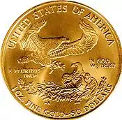 - ↑ Peters, Gerhard; Woolley, John T. "Ronald Reagan: "Statement on Signing the Gold Bullion Coin Act of 1985 ," December 17, 1985". The American Presidency Project. University of California - Santa Barbara.