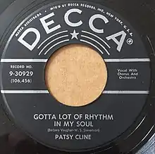 - 1 2 Cline, Patsy (July 20, 1959). ""Gotta Lot of Rhythm in My Soul"/"I'm Blue Again" (7" vinyl single)". Decca Records. 9-30929.