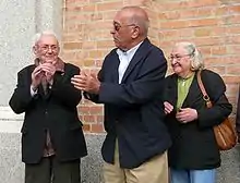 Nicolás Redondo and Marcelino Camacho, leaders of General Union of Workers and Workers' Commissions respectively - the two major trade union confederations that organized the general strike of "14-D" - during an act of homage to the political prisoners of the Francoism in 2008