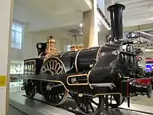 One locomotive, Columbine, a 2-2-2 tender engine built in 1845 at Crewe Works, is preserved at the Science Museum.[16] Designed by Alexander Allan, it was the first of the GJR's standard 'Crewe-type' engines, with outside cylinders, and carried fleet number 49.[16] It was withdrawn from service in 1902 by the LNWR, carrying their number 1868.[16]