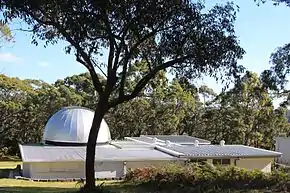 Green Point Observatory is a private observatory in Oyster Bay, Sydney, Australia, and is the home of the Sutherland Astronomical Society. It is located at the corner of Green Point and Caravan Head Roads. It consists of a dome, library, 41 centimetres (16 in) Newtonian telescope, a meeting hall seating 100 people, and a roll-off roof observatory with a 35 centimetres (14 in) Schmidt Cassegrain Telescope. The observatory is used by members of the society for observing stars and eclipses, research, astro imaging as well as hosting public education courses and monthly open nights.