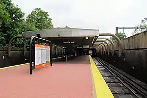 Green Street station (signed as Green) is a rapid transit station in Boston, Massachusetts. It serves the MBTA's Orange Line and is located in the southern part of the Jamaica Plain neighborhood. Green Street is the least-used station on the Orange Line, averaging 3,055 weekday boardings in FY 2019.[2] Like all Orange Line stations, it is fully accessible.