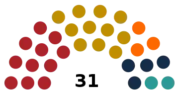 The 31 members of Parliament were elected by proportional representation in multi-member constituencies. Seats were allocated using the d'Hondt method.[3]