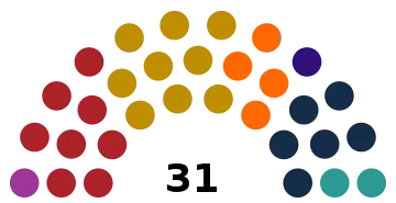 The 31 members of Parliament are elected by proportional representation in multi-member constituencies. Seats are allocated using the d'Hondt method.[4]