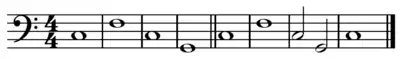- ↑ Caution: Keeping all chords in root position without using a stepwise melody produces parallel fifths (see parallel harmony), which are prohibited by classical (rather than popular) voice-leading rules. The following files may or may not be more suitable for use in strict counterpoint, though they lack the ground bass.