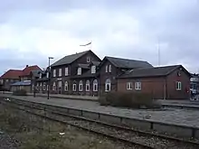 The station building from 1876 was designed by the Danish architect Niels Peder Christian Holsøe (18261895), known for the numerous railway stations he designed across Denmark in his capacity of head architect of the Danish State Railways.[3]