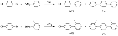 Grignard reagents do not typically couple with chlorinated arenes. This low reactivity is the basis for chemoselectivity for nickel insertion into the C–Br bond of bromochlorobenzene using a NiCl2-based catalyst.[21]