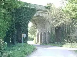The viaduct was designed by Isambard Kingdom Brunel and was built as part of the Wilts, Somerset and Weymouth Railway line,[2] opened by the Great Western Railway in 1857. It consists of three arches; the central arch passes over the road from Grimstone to Sydling St. Nicholas, and is connected to the arches either side of it by a series of arches within the bridge.[3] Sydling Water flows underneath the bridge. It is a Grade II listed building.[3]