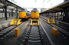 Groningen railway station (Dutch pronunciation: [ˈɣroːnɪŋən] ; abbreviation: Gn), locally called Hoofdstation (main station), is the main railway station in Groningen in the Province of Groningen, Netherlands. It is located on the Harlingen–Nieuweschans railway between Zuidhorn and Groningen Europapark, on the Meppel–Groningen railway as terminus after Groningen Europapark, and on the Groningen–Delfzijl railway as terminus after Groningen Noord.
