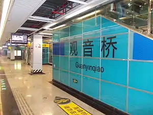Guanyinqiao is an interchange station on Line 3 and Line 9 of Chongqing Rail Transit in Chongqing Municipality, China.[1][2] It is located in the Jiangbei District. It opened on 29 September 2011 with the opening of Line 3. On 25 January 2022, it became an interchange station with the opening of Line 9.