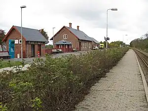 Like the other stations on the Esbjerg–Struer railway line, the still existing station building from 1874 was built to designs by the Danish architect Niels Peder Christian Holsøe (1826–1895), known for the numerous railway stations he designed across Denmark in his capacity of head architect of the Danish State Railways.[3]