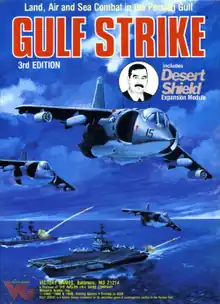 Gulf Strike is a 2-player operational level wargame first published during the protracted Iran-Iraq War that simulates the possible confrontation of superpowers, who are drawn into conflict in the Gulf Region of the Middle East using tactics and equipment of the 1980s.[4] The game includes all aspects of military operations of the time, including air, naval and land combat.[1]