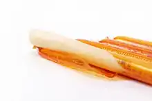 Gyoniku soseji (魚肉ソーセージ) is a Japanese fish sausage made from surimi. It is sold in a plastic casing as a snack. Gyoniku soseji is similar to the traditional fish cake, kamaboko.[1][2] Gyoniku soseji and kamaboko together constitute 26% of Japanese fish consumption.[3]