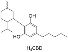 H4CBD (hydrogenated CBD, tetrahydrocannabidiol) is a cannabinoid that was first synthesized by the Todd group in 1940 derived from the catalytic hydrogenation of cannabidiol.[1]