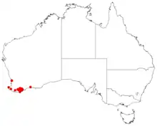 Hakea ambigua is found in areas along the south coast in the Great Southern and South West regions of Western Australia. The bulk of the population is confined to the Stirling Range. It is found on hillslopes, growing mostly in shrubland and mallee in sandy rocky quartzitic soil and gravelly loam. It requires a sunny aspect on a well-drained site.[2][8]