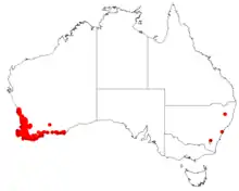 Candle hakea is a widespread coastal and inland species from Eneabba to Augusta and in the east to Esperance. It grows in heath and scrubland on sand, gravelly clay and laterite. A hardy ornamental species which is tolerant of moderate frost and a good understory shrub.[2][3]