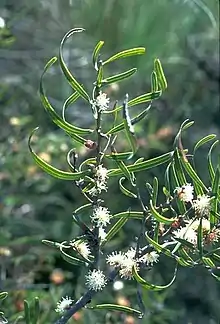 Hakea stenocarpa is a shrub in the family Proteaceae, commonly known as narrow-fruited hakea.[2] It has scented creamy-white flowers in clusters, often with curling leaves and is endemic to an area in the Mid West, western Wheatbelt, Peel and the South West regions of Western Australia.