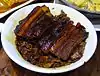 | Fried pork with fermented tofu | This is a popular Lunar New Year offering which involves two stages of preparation. Marinated pork is deep fried to remove moisture so as to preserve it. The pork is then stewed with water and wood's ear fungus. It is a Hakka equivalent to canned soup. | |||||