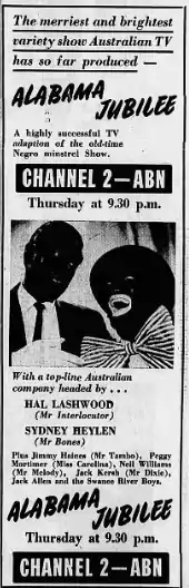 - ↑ "HAL LASHWOOD'S MINSTRELS. 1960.12.15". National Film and Sound Archive. Archived from the original on 2 July 2020. Retrieved 2 July 2020.
