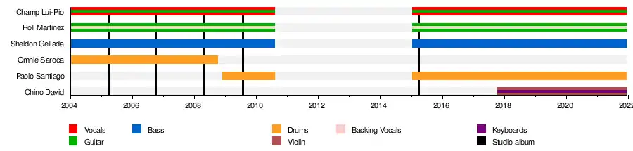 - Champ Lui Pio - lead vocals, rhythm guitar (2004–2010, 2015–present)