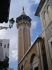 A dedicated builder, Hammuda was responsible for the construction of many souks of the Medina of Tunis, as well as many palaces, including the Dar Hammouda Pacha and the predecessor of the modern Dar El Bey. In 1655, he had Ottoman architects build the Hammouda Pacha Mosque in the Turkish style, with an elegant octagonal minaret, below which he constructed his family mausoleum.[4]