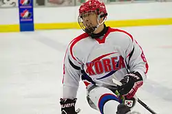 Han Min-su (Korean: 한민수;[1] born 3 June 1970)[2][3] is a South Korean ice sledge hockey player. He played in the 2010 and 2014 Paralympic Winter Games. At the 2010 Games in Vancouver, he was the flag bearer for South Korea. He won a silver medal at the 2012 IPC Ice Sledge Hockey World Championships.[4] Han was a member of South Korea's bronze medal winning team in para ice hockey at the 2018 Winter Paralympics.
