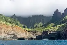 Hanakoa Valley is a hanging valley along the Kalalau Trail along the Nā Pali Coast of the island of Kauai in the state of Hawaii.[1] Hanakoa has primitive camping via permit only and offers individual campsites, shelters, and basic composting toilets.[2] It is located on mile 6 of the Kalalau Trail, often used as a resting destination for hikers completing the Kalalau Trail to Kalalau Valley.[3] Hanakoa Stream runs through camp and divides it in half. Nearby Hanakoa Falls is accessible by an unmaintained trail.