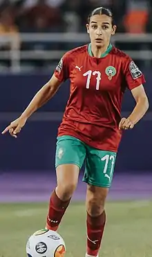 Hanane Aït El Haj (Arabic: حنان أيت الحاج; born 2 November 1994) is a Moroccan professional footballer who plays as a defender for AS FAR and the Morocco women's national team. She often plays as a right back.