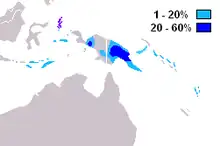 One study has reported finding haplogroup S-M230 in: 52% (16/31) of a sample from the Papua New Guinea (PNG) Highlands; 21% (7/34) of a sample from the Moluccas; 16% (5/31) of a sample from the Papua New Guinea coast; 12.5% (2/16) of a sample of Tolai from New Britain; 10% (3/31) of a sample from Nusa Tenggara, and; 2% (2/89) of a sample from the West New Guinea lowlands/coast.(Kayser 2003 Cox 2006)
