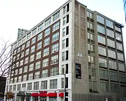 Built between 1914 and 1915, this historic factory building is an eight-story, L-shaped, reinforced concrete building, which is clad in brick and has terra cotta details. From 1914 to 1942, it housed Laird, Schober & Company, a manufacturer of women's, children's, and misses' shoes. It then housed a clothing manufacturer until 1985.[2]