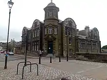 Hawick was designated a burgh of regality in 1669 and became a police burgh in 1868.[23] Hawick Town Hall on the High Street was built in 1886, designed by James Campbell Walker in the Scottish baronial style.[24]