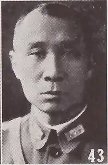 He Chengjun (Chinese: 何成濬) (June 20, 1882 – May 7, 1961) was a Kuomintang politician and military officer of the Republic of China. He was born in Hubei. He was graduate of the Imperial Japanese Army Academy. As a member of the Tongmenghui, he took part in the Xinhai Revolution. He was briefly mayor of Beijing after its capture by the National Revolutionary Army during the Northern Expedition. In the Second Sino-Japanese War, he was governor of his home province and defended it against the advancing Imperial Japanese Army. After the defeat of the Kuomintang in the Chinese Civil War, he went to Hong Kong and in 1951 arrived in Taiwan. He died in Taipei at the age of 78.[1][2][3][4][5][6]