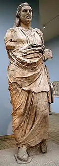Idrieus and Ada I succeeded Artemisia II upon her death in c. 351/0 BCE.[13][2] The two appear to have ruled in a similar manner to Mausolus and Artemisia before them. Only Idrieus is named on coinage, in inscriptions, and as satrap, but Ada otherwise appears alongside him in much dynastic iconography and in some inscriptions. For example, Idrieus and Ada were depicted either side of Zeus Labraundeus, the chief god of the Hecatomnid dynasty, in a relief from Tegea in the Peloponnese.[14][15]