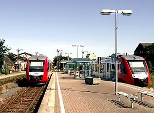Heide (Holst) station is a junction station in the town of Heide in the district of Dithmarschen in the German state of Schleswig-Holstein. The Hamburg–Elmshorn–Heide–Westerland, the Neumünster–Heide and the Heide–Büsum lines cross here.