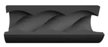 The progressing cavity pump normally consists of a helical rotor and a twin helix, twice the wavelength helical hole in a stator. The rotor seals tightly against the stator as it rotates, forming a set of fixed-size cavities in between. The cavities move when the rotor is rotated but their shape or volume does not change. The pumped material is moved inside the cavities.[1]