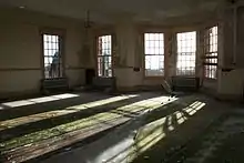 The main complex comprised an administrative block, central stores, kitchens, a recreation hall and the assistant medical officer's residence. Like most large institutions of that age and type, the sexes were separated into separate accommodation and work areas. To the west of the central block stood the male wards, workshops, boiler house, water tower and maintenance department. The female wards were located on the east side of the hospital along with the laundry, sewing room and a nurses' home. All of the buildings in the main complex were linked by an extensive network of corridors.[2]