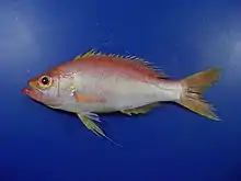 Hemanthias is a genus of colourful marine ray-finned fish in the subfamily Anthiinae, part of the family Serranidae, the groupers and sea basses. They are found at rocky reefs at depths of 20–610 m (66–2,001 ft) in the tropical and subtropical East Pacific and West Atlantic.[2]