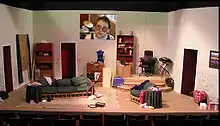 There are more than 30 sound and video clips which must be recorded in advance and played on cue. Alternatively some can be live feeds from backstage, or recorded during the performance and replayed.