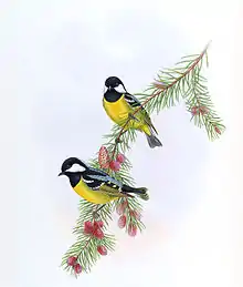 Yellow-bellied Tit Parus venustulus, between 1850 and 1883, The Birds of Asia. Volume 2, J. Gould & H.C. Richter