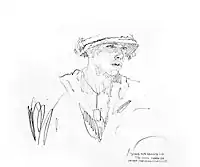 In 1967, as the American involvement in the war in Vietnam escalated, Casselli voluntarily enlisted in the United States Marine Corps. He was assigned the position of combat artist, and upon his deployment found himself immersed in the Tet Offensive of 1968. As Casselli later recalled, "[W]ithin three days of my arrival, I was knee-deep in war. I had to be a Marine first just to survive."[1] Despite the hardship of war, Casselli was able to depict soldiers and scenes of war in pencil sketches and paintings during his combat tour, artwork that is now part of the collection of the National Museum of the Marine Corps, in Washington, DC.