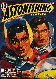 "Heredity" is a science fiction short story by the American writer Isaac Asimov. Asimov wrote the story, his twenty-third, in August 1940 under the title "Twins". It was rejected by John W. Campbell, editor of Astounding Science Fiction, on 29 August, and accepted by Frederik Pohl on 4 September. It appeared in the April 1941 issue of Astonishing Stories under the title "Heredity" and was reprinted in the 1972 collection The Early Asimov. Heredity was the second Asimov story to receive a cover illustration.